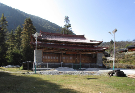 In a few minutes you will reach the mosque in Longwangbian Village. An English plaque on the building reads ‘The Xianggelila mosque’. In the forest behind the mosque a footbridge crosses a stream. There, at an elevation of 2,750 meters, the Base Camp Route officially begins (27°22’16“N, 100°7’42“E).