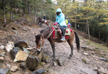 Over the years, the path to Base Camp has received heavy use from thousands of mountaineers and mules. This has caused major erosion, deep rutting and a proliferation of paths. Under wet conditions the track may turn into a muddy mess. Needless to say, the trek can be unpleasant. Riding a mule can be a sensible alternative to walking.