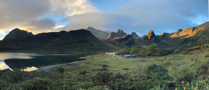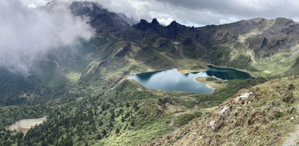 Black Lake is one of the most scenic natural features of the Haba massif. Perched at an elevation of 4,100 meters, it is by far the largest of several alpine lakes lying on the northwest slopes of the mountain. The name derives from the waters’ appearance, the result of the depth and composition of the lake bed. From the shore you can enjoy extensive views of moor and mountain at every turn. You can briskly walk around the lake in 45 minutes, but a more leisurely stroll allows the outsized scenery to soak into your soul.
