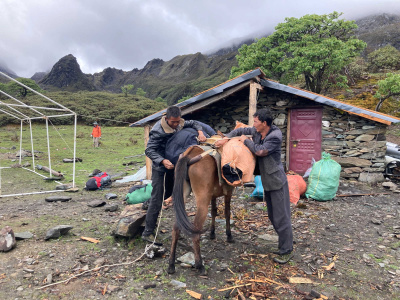 During busy periods such as the first week of October, Haba guest houses erect tents for clients on the north shore of the lake. These are for paying clients and not available to all trekkers. A primitive latrine is situated nearby for use by anyone.