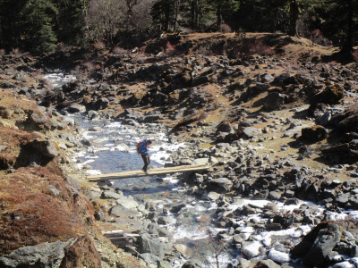 Hiring a guide is recommended. The section between Black Boulder Junction and Jianshan Meadow is complicated by proliferation of paths. This poses more of a problem on the descent than on the ascent. Experienced hikers with good route-finding skills should fare well, but others are best advised to hire a guide.