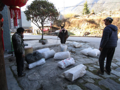 After one week at the lake, payment of 400 RMB per mule for the one-day descent to Haba Village.