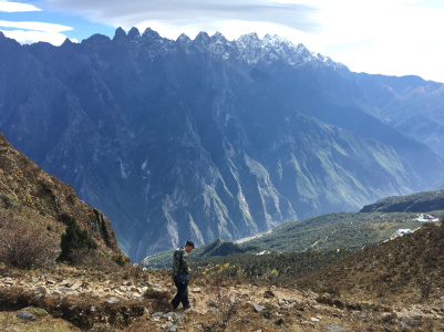 Impressive views of the snow mountain “brothers”—Haba and Jade Dragon (玉龙雪山)—await the the rare trekker who mounts Miner’s Pass. See Miner’s Pass Route (矿工垭口路线) for more.