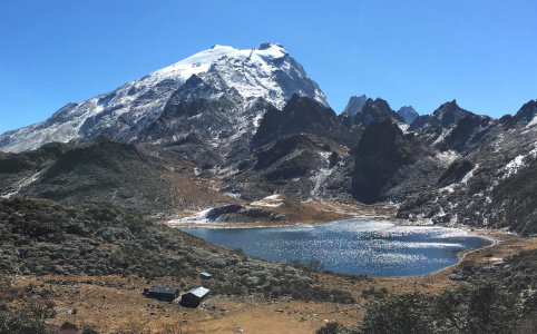One of Haba’s finest viewpoints? Pass 4230. The summit, topped by shining glaciers, lords over all. A cascade of lower peaks and savage crags completes the alpine splendor. Walk a short distance down from the pass for a grand sight: Black Lake settled in the valley below, Haba soaring above.