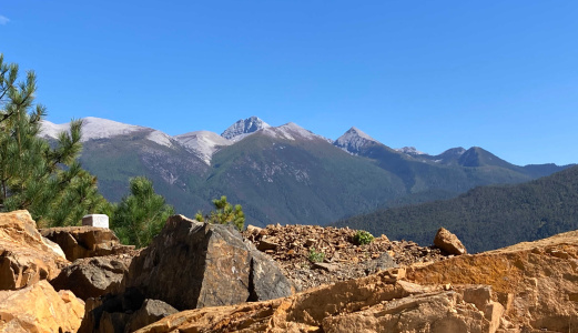 No Name Mountains are located 80 km north of Lijiang and 50 km southeast of Shangri-La City. The massif consists of a circular ring of high peaks ranging in elevation from 4,000 to 4,600 meters. A 15-kilometer long valley drains the peaks east down to the Jinsha River.
