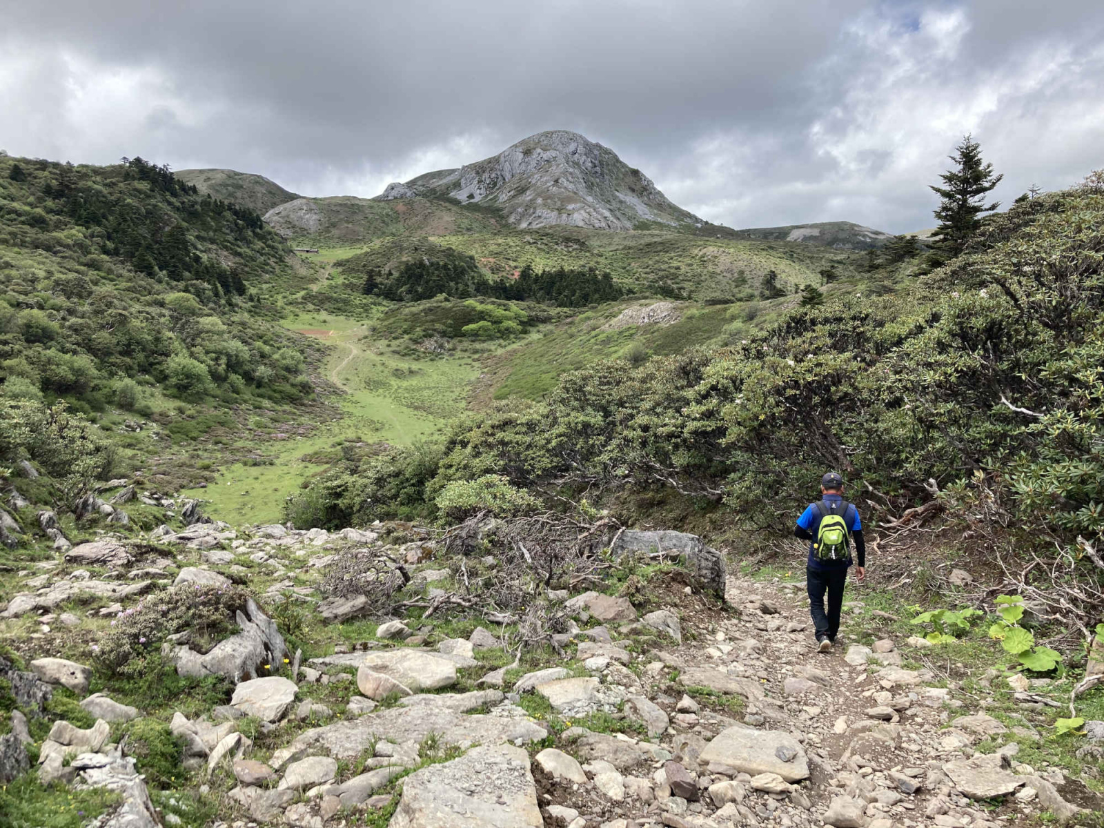 The Back Side Route (背面路线) winds around the east, north and west sides of Shika Snow Mountain (石卡雪山). The cable car base station serves as the starting point. The end point is the visitor observation platform on the summit ridge, just above the top station. For a full-day loop hike, take the Base to Summit Route up the mountain and descend Back Side Route. The 22 km trek circles the entire mountain.