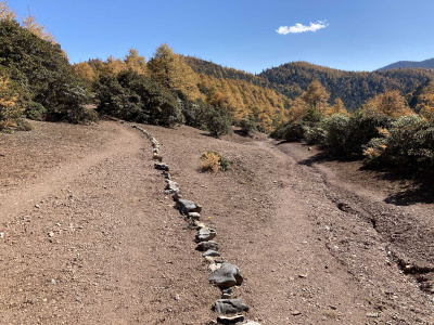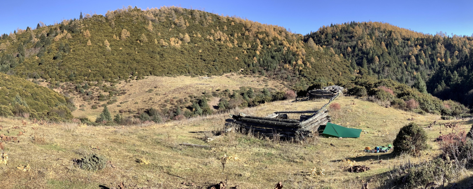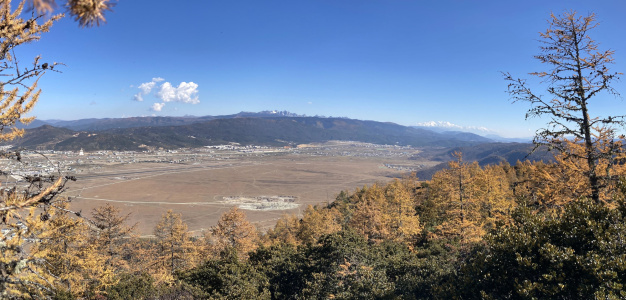 A bit further on a spur trail leads several hundred meters to Observation Platform #1 (1号观景台), elev. 3,750 meters, offering a splendid view of the surrounding terrain. From the intersection with the spur trail, East Side Route descends to the plains with considerable elevation loss. Immediately upon reaching the plains, join a dirt road which leads north 2 km to an intersection with the road from Shangri-La to the cable car base station.