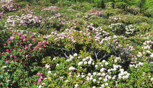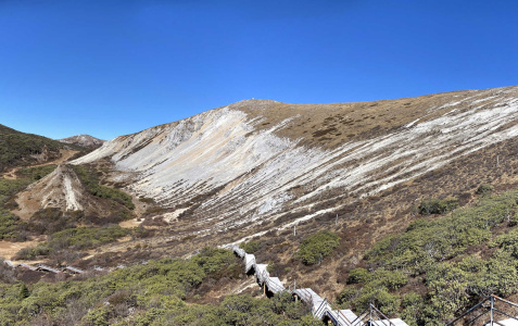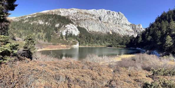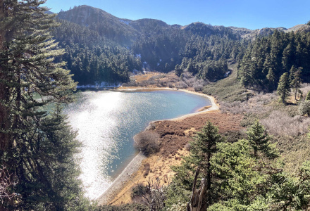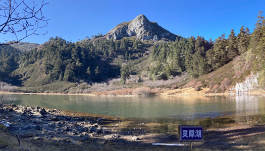 Lingxi Lake (灵犀湖) is an alpine tarn set near timberline, elev. 4,070 meters. It is situated 1½ km southwest of Shika’s summit. There are several ways to reach the lake: a) entirely on foot from base station, b) cable car to top station then walking down to the lake, c) cable car to middle station then walking up to the lake, or d) micro-bus tours from the middle station offered by the cable car company.