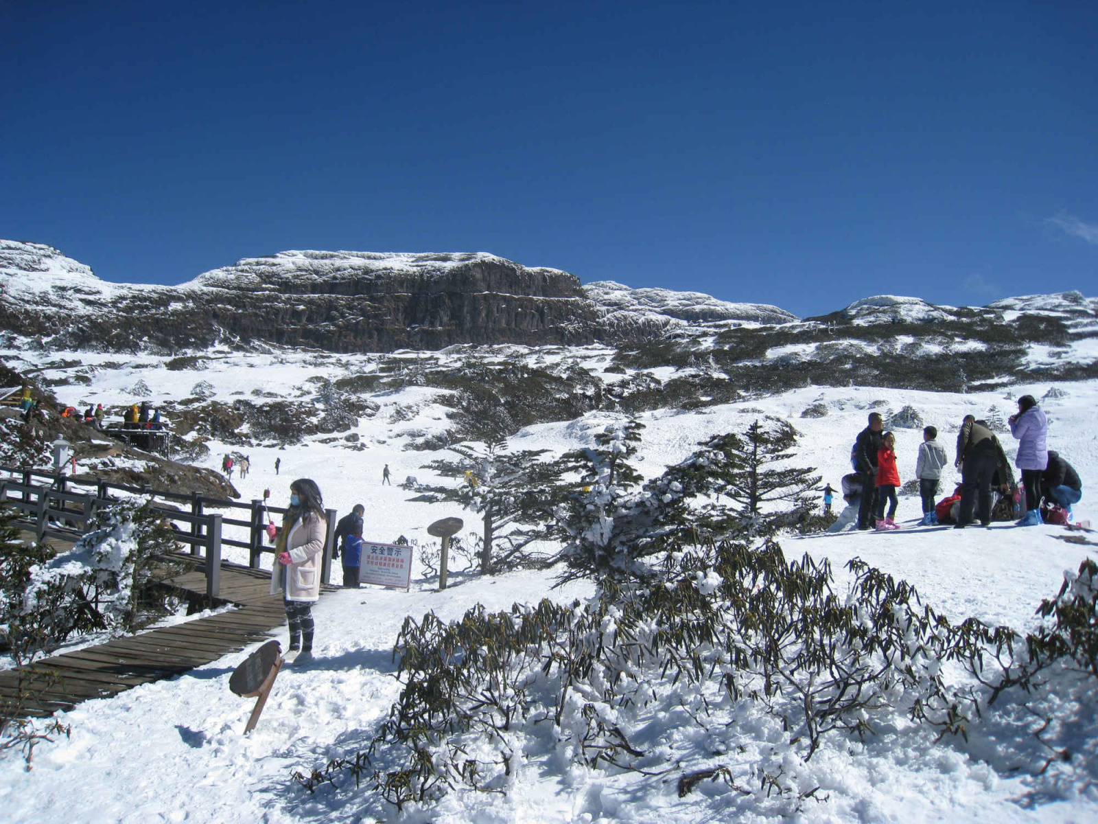 Jiaozi Snow Mountain can be reached after a 2-plus hour drive north from Kunming City. Visitors may ascend the peak the whole way on boardwalks, or shorten the trip with the gondola ride. The summit elevation is 4,247 meters. The mountain is especially popular in winter when the area is covered in snow and the views are superb.