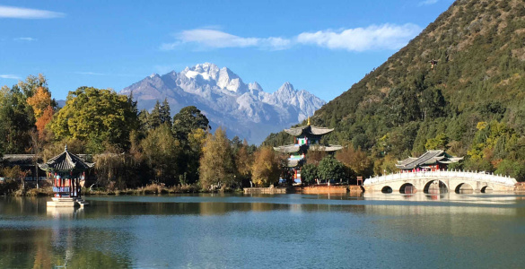The mountain, towering over the city of Lijiang, is actually a small range with a dozen peaks surpassing 5,000 meters. The highest summit, Shanzidou, reaches 5,596 meters. Three cable cars transport hoards of tourists onto the heights, but it is easy to escape the bustling crowds. TrekYunnan.com is developing content for various treks on the massif.